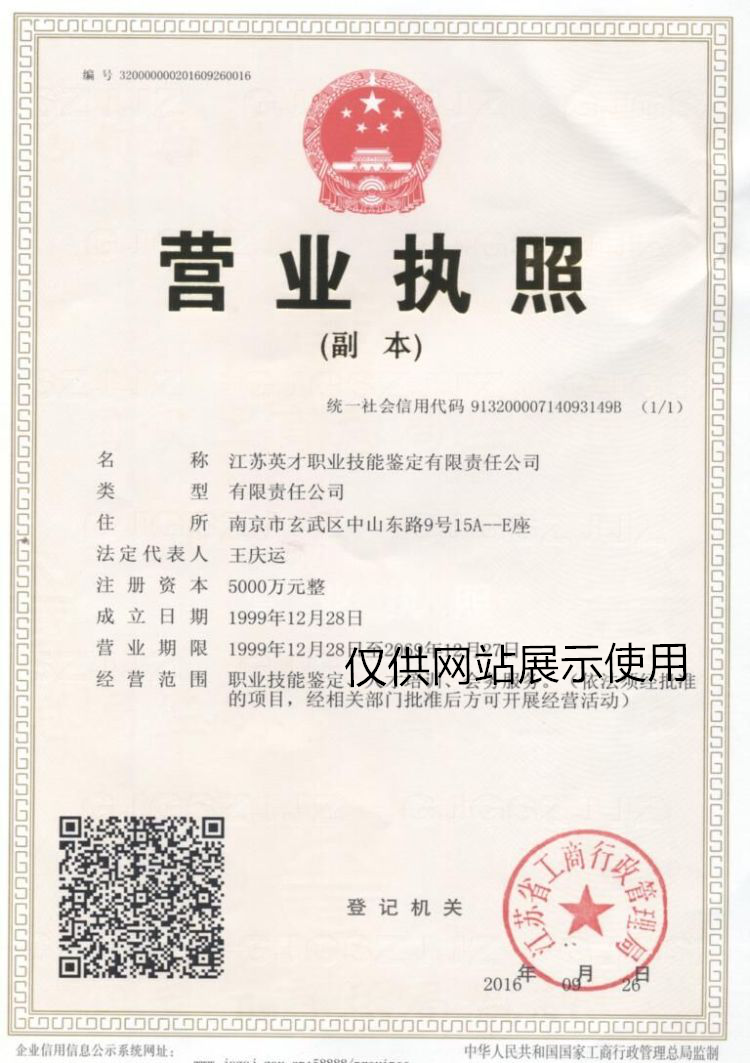 江苏英才职业技能鉴定有限责任公司营业执照